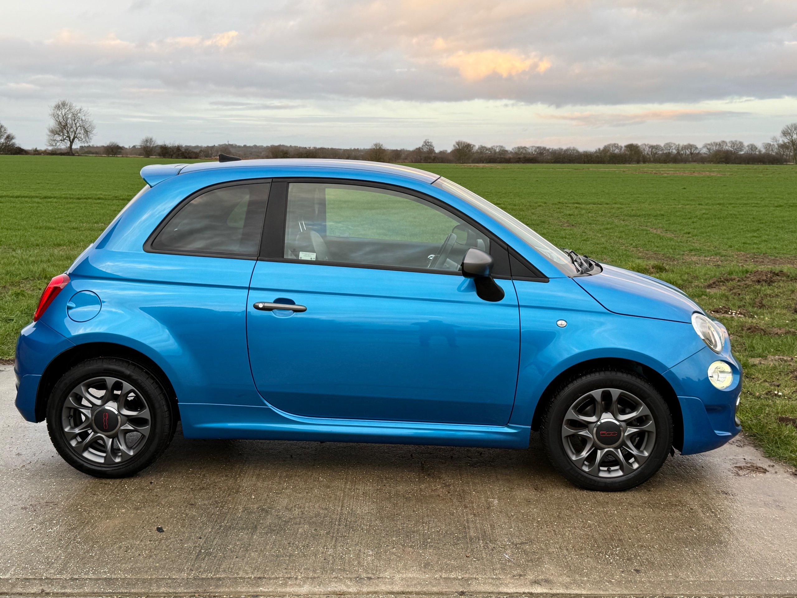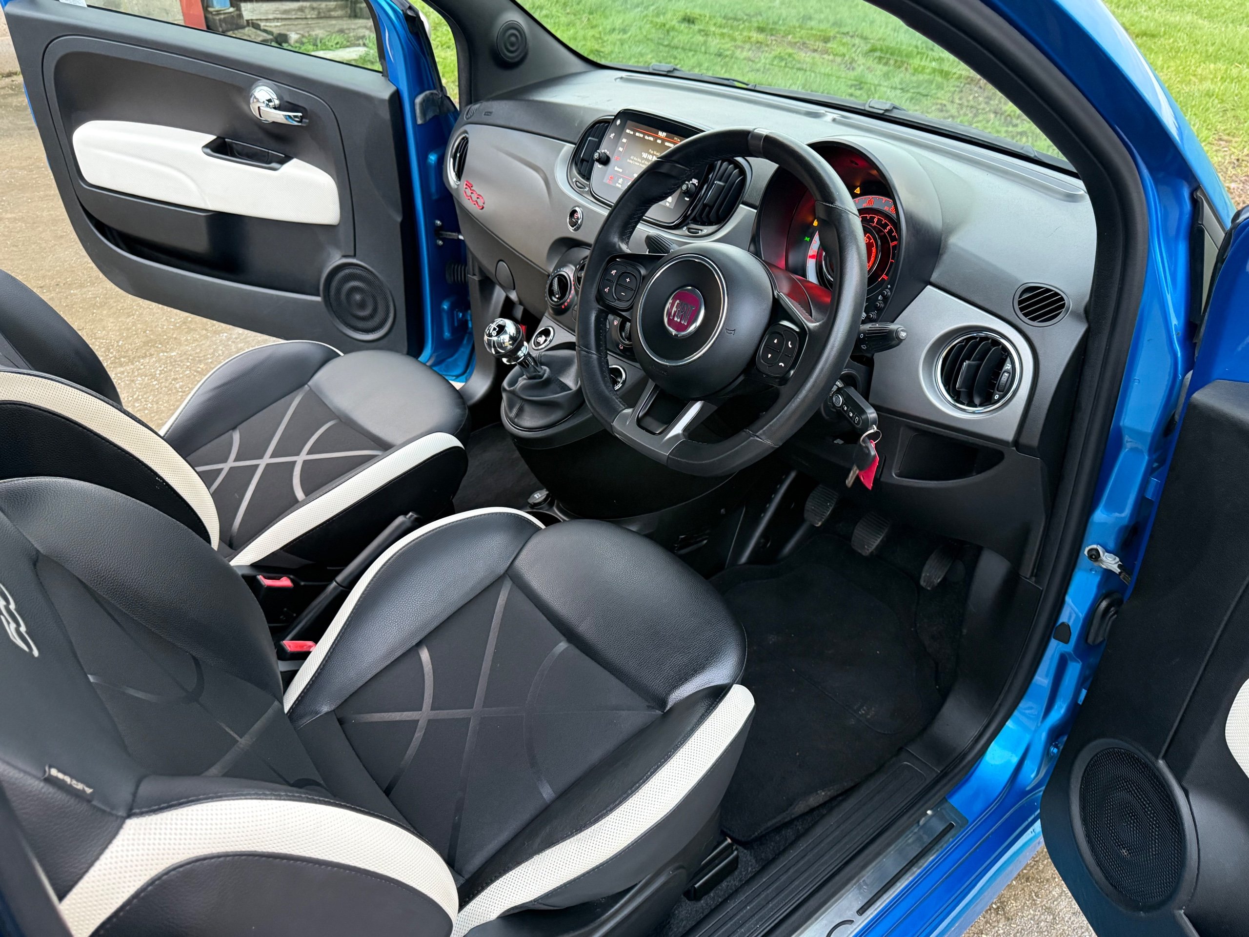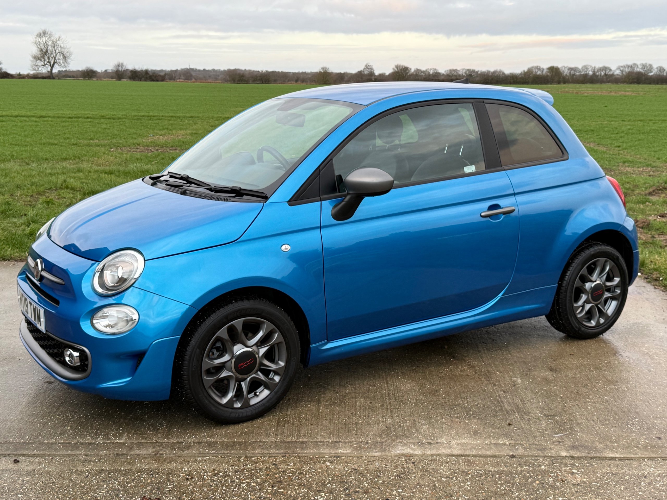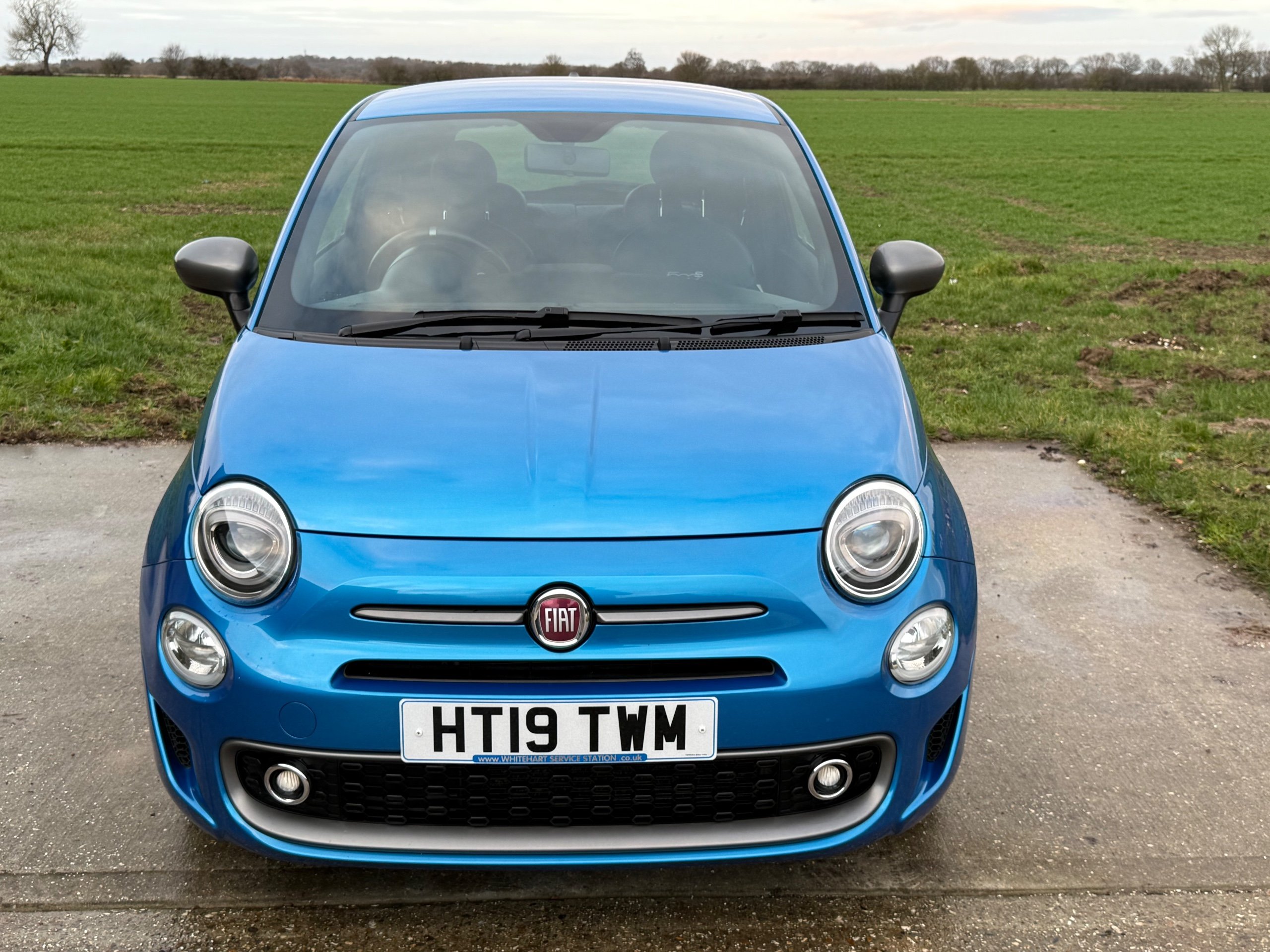 Here at Whitehart Service Station we are delighted to offer for sale this 2019 "19" Fiat 500 S 1.2, only 2 owners from new with 48973 miles and a Full Service History. Finished in gleaming metallic blue paintwork, complimented with contrasting 2 tone part cloth/ leather sport interior, refinements include, remote central locking, electric windows, electric mirrors, leather trimmed multi function flat bottom sport steering wheel, adjustable steering column, air conditioning, full colour touch screen infotainment system Dab radio, Bluetooth, usb, phone connectivity u connect, city drive power steering, iso fix, cup holders, air bags, alloy wheels, alarm and immobiliser. If you have any questions, please call the showroom on 01702 202202 or Stuart directly on 07814 001598. -